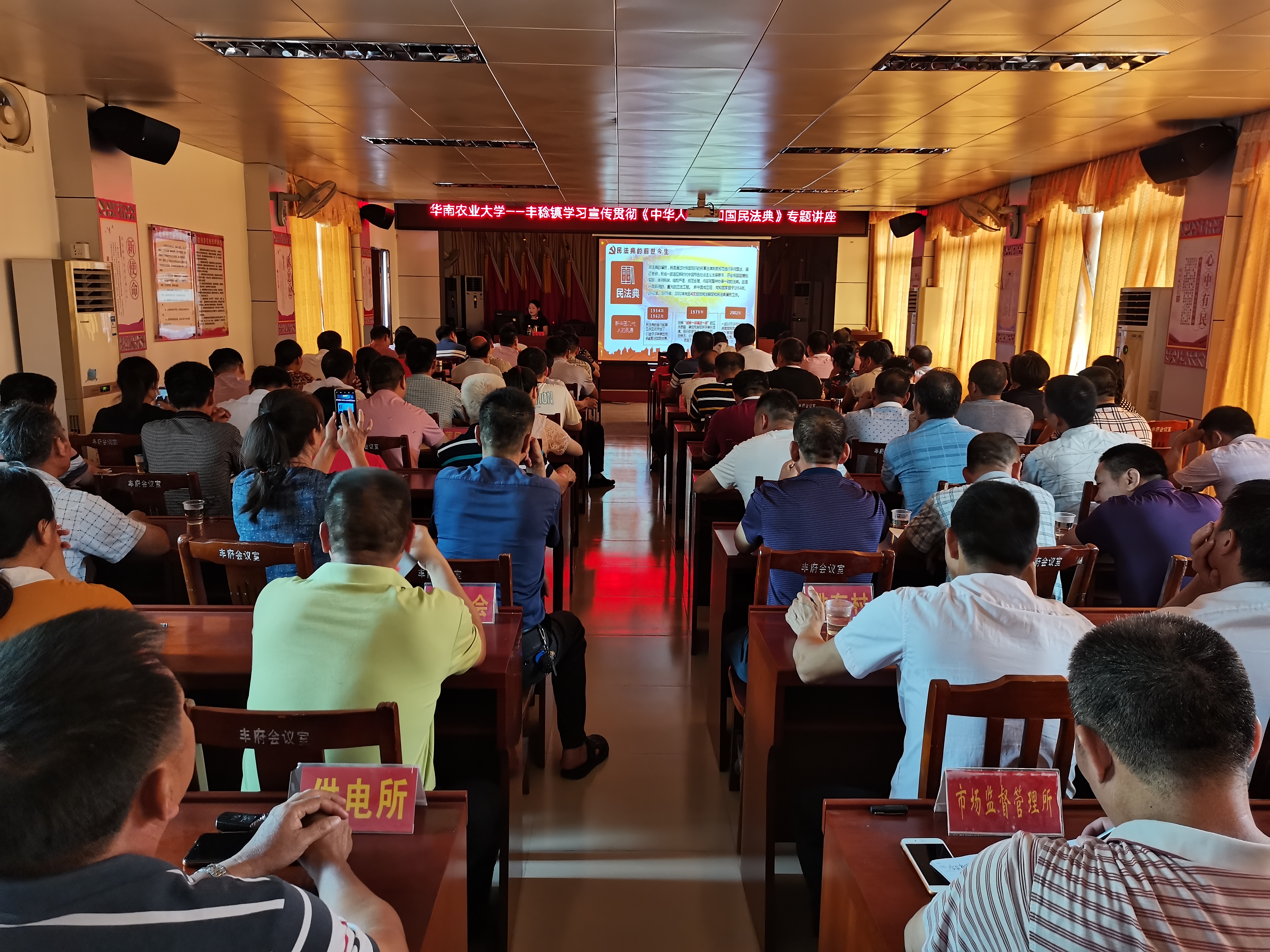 随后,公司《民法典》宣讲团成员陈维君副教授为丰稔镇全体村干部120多人举行了一场《中华人民共和国民法典》专题讲座,讲座由丰稔镇党委书记廖文彦主持。陈维君副教授从民法典的历史沿革、重要意义、体系构建和主要亮点等四个方面详细解读了《中华人民共和国民法典》的主要知识点。对总则、物权、合同、人格权、婚姻家庭、继承、侵权责任等七个篇章进行了深入浅出、简明扼要的分析,并以工作、生活中的案例为切入,围绕《民法典》的主要亮点进行重点解读。