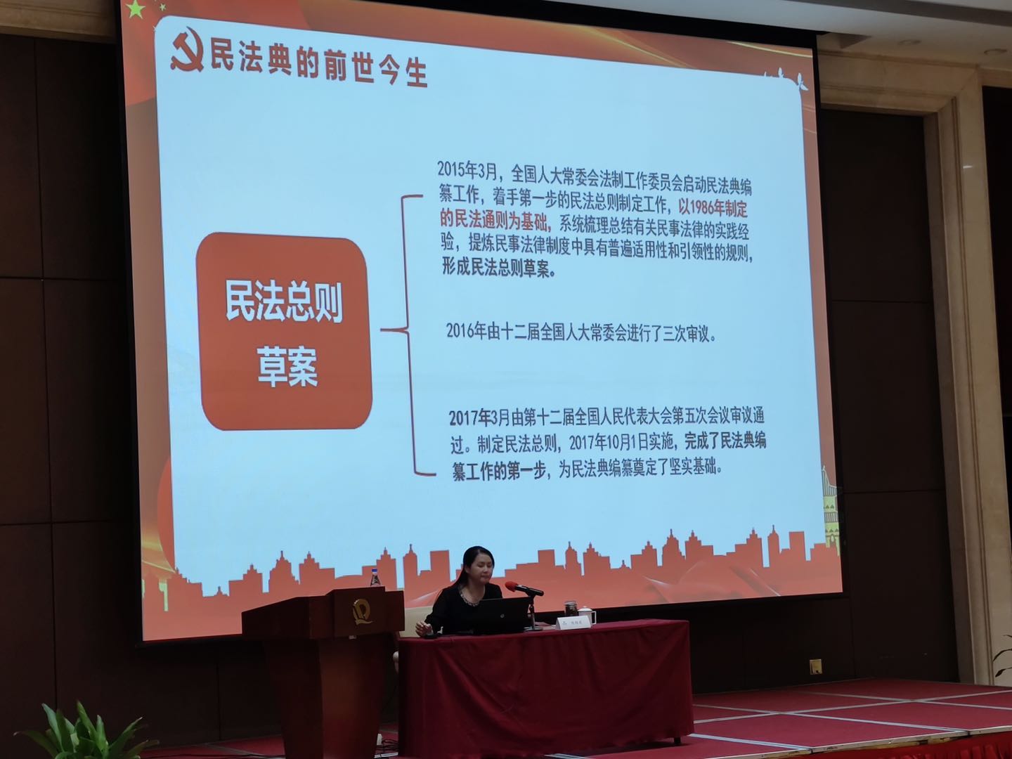 公司《民法典》宣讲团成员、法律系副教授陈维君老师从民法典的前世今生、民法典的重要意义、民法典的体系建构、民法典的主要亮点四个方面为与会人员做了深入、细致地解读。