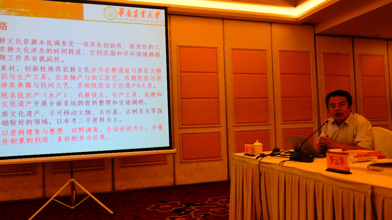 会议研讨环节由中国农业历史遗产研究所副所长兼广州农业文化遗产研究基地主任王福昌教授主持,参会领导、专家就如何让广州农耕文化“活起来”“火起来”发表了见解。原董事长骆世明教授认为,人与自然的和谐之道可以在农耕文明中找到答案,农耕文化必须要坚持习近平主席提出的“在发掘中保护、在利用中传承”,资源发掘出来之后更要用起来。全国工程勘察设计大师、深圳大学何昉教授提出,未来可以将农业文化遗产串联起来,把广州打造成为一个以农业景观为特色的、点线面结合的现代化田园都市。广州市方志办胡巧利副主任建议从经济价值发掘、科普教育开展、价值观传递等方面做好课题的“后半篇文章”。校发展规划处处长章家恩教授建议制定广州市农业文化遗产保护规划,“硬性”与“软性”保护措施双管齐下。学院张晖书记表示,优秀农耕文化传承保护具有重要的现实意义,人文学院在该领域的研究有深厚的底蕴,未来争取再立新功。中国农业历史遗产研究所所长倪根金教授建议继续推动南沙沙田、增城乌榄等重要农业文化遗产的发掘与申报工作。广州博物馆曾玲玲副馆长表示,农耕文化保护起步较晚,市局和课题组应总结与分享经验,为有关部门和行业的决策提供参考。广东农工商职业技术学院广东乡村振兴培训学院马明兵执行经理表示,举办专题培训是农耕文化普及教育的重要方式。深圳大学博士后蒋怡辰认为,乡村规划、生态博物馆、田园综合体、特色小镇、文化旅游区、传统村落更新、农业观光园等各类项目的实施均可以成为新时期农耕文化活化利用的工具。