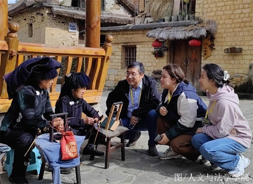 图十 向阿者科村老人了解传统纺织技艺