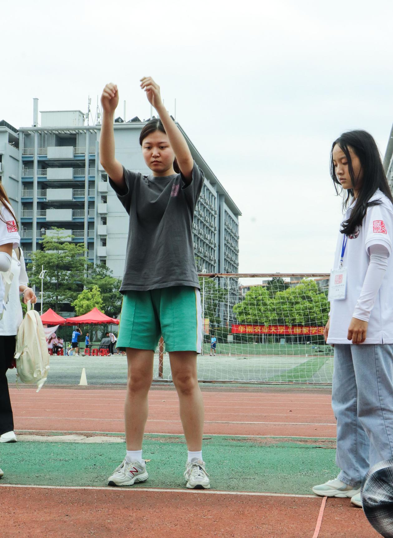 女子组立定跳远比赛进行中