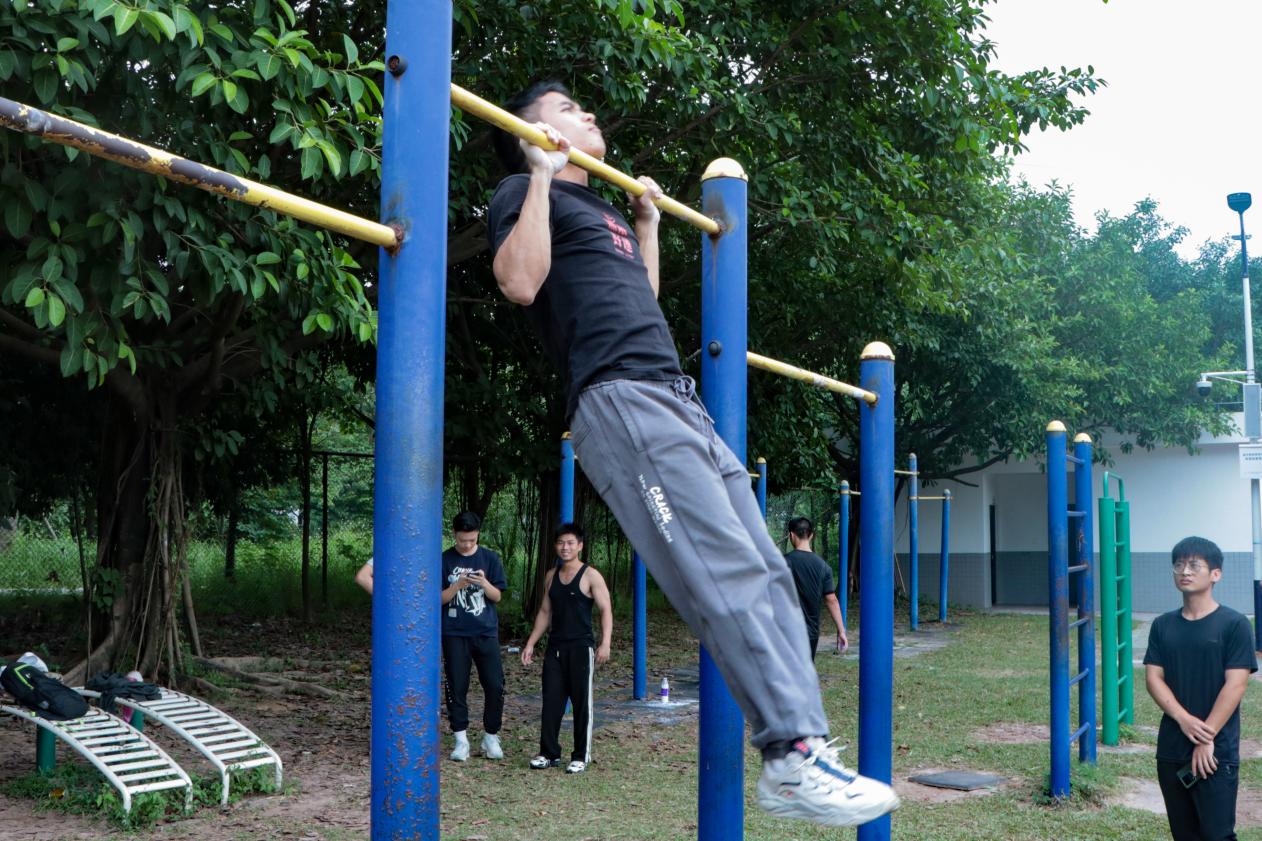 10月17中午,提前赛拉开序幕。运动场一角,女子组仰卧起坐和男子组引体向上正在进行。参加引体向上的运动员们正打起十二分精神,咬紧牙关,全身绷紧,一个接一个完成动作,纵使精疲力竭也不轻言放弃。随着一声哨响,参加仰卧起坐的运动员们坐起、躺下,动作迅速而有力,赛程过半,运动员们却不知疲倦,依旧坚持到底。
