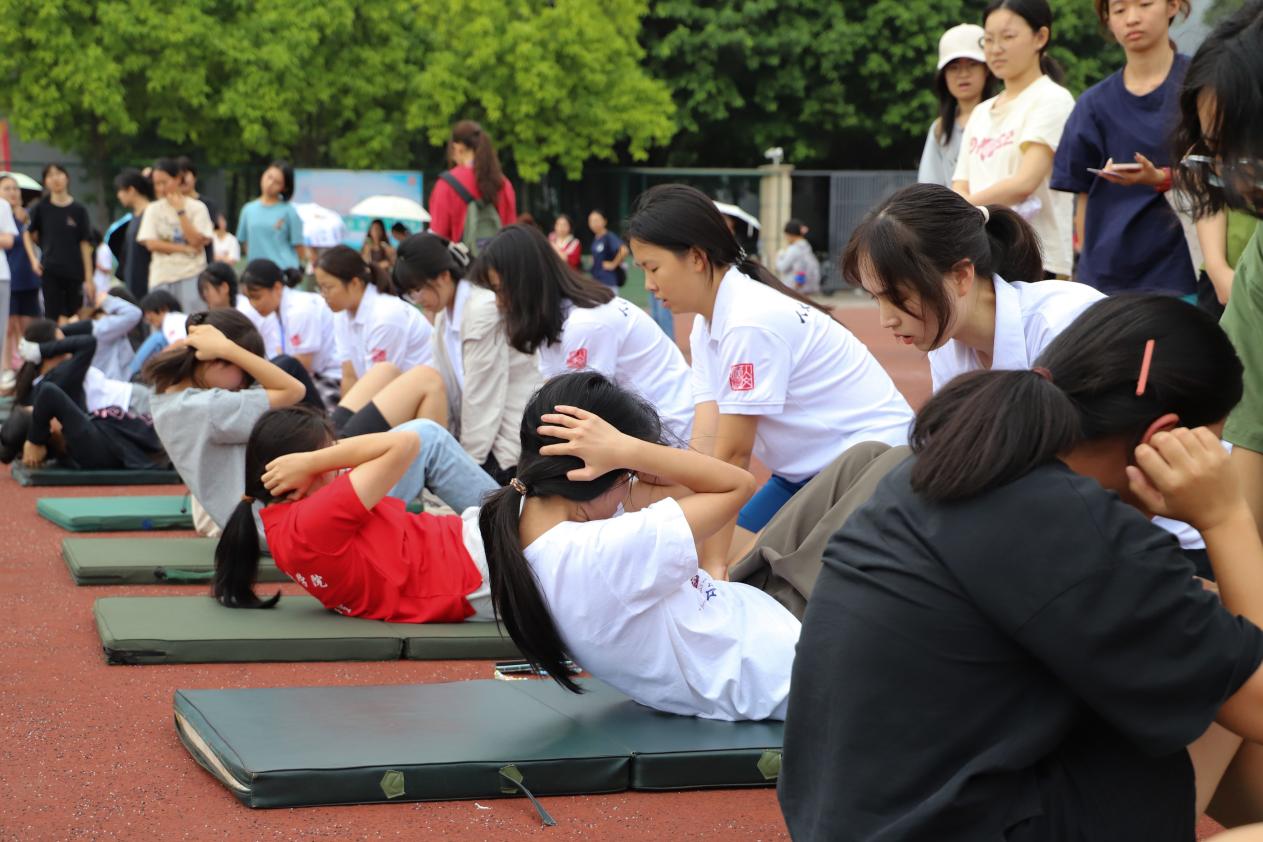 女子组仰卧起坐进行中