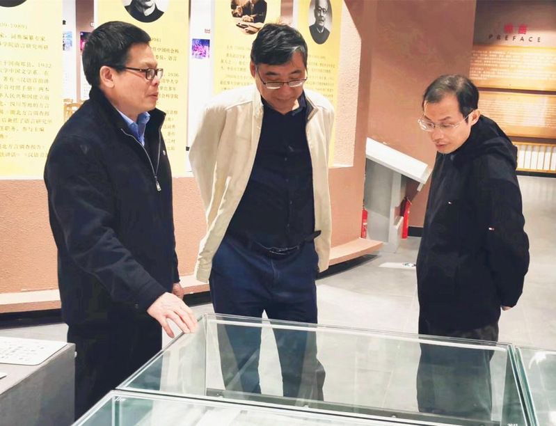 2月28日下午,考察团队抵达贺州八步区,先后参观贺州博物馆、贺州学院民族文化博物馆、贺州学院语言文化博物馆。在贺州博物馆,考察团队着重参观了贺州瑶族风情展、贺州汉魂展、贺州古碑展,对展出的汉、瑶传统农业生产工具进行仔细观摩,专门研讨,尤其是对颇具贺州地方特色的插秧船与其他地区插秧船进行了分析对比。在贺州学院民族文化博物馆受到语言博物馆罗老师的热情接待,并在他和博物馆志愿者的带领下,参观了族群文化、契约文书、矿冶钱币、长寿文化、牌匾文化、碑刻拓片、耙饼文化、南方傩文化等11个专题展厅。特别是在传统农具展前,大家饶有兴趣观看、研讨当地各式农具,其中竹麻制品和用于木薯加工的工具薯粉瓢漏、漏勺,大家还是首次见到。当随行研究生在科举牌匾上发现《植物名实图考》作者吴其濬的题名,欢欣鼓舞。考察中团队向陪同的当地师生了解一些农具的当地名称及功用,听取罗老师对中国地方特色方言的介绍,观看由员工制作的展示广西各地方言视频。整个考察内容丰富,特色鲜明,收获颇多。