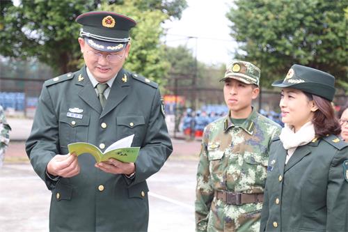 师长杨运东看军训杂志《军绿》